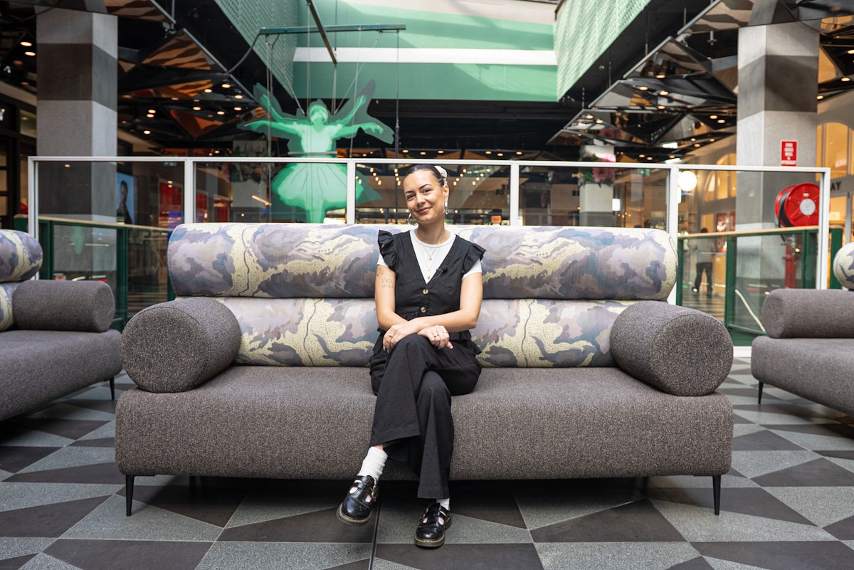 Every day, thousands of people pass through Melbourne Central—rushing to class, grabbing coffee, meeting friends. But now, nestled in the heart of the centre, there’s a moment of pause: a striking couch design by proud First Nations artist and RMIT graduate Lucinda Johnson-Cornes.
