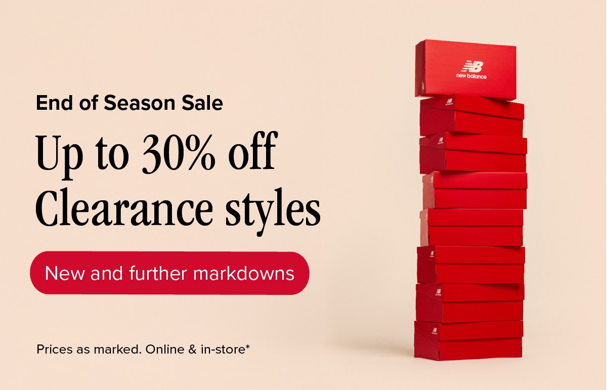 Up to 30% off Clearance styles Home ... Offers Up to 30% off Clearance styles End of Season Sale. Up to 30% off Clearance Styles. New and further markdowns. Terms and Conditions apply. See in store for more details. Details Valid until: 4 Jan 2026 New Balance , Located on 1 03 9663 4007
